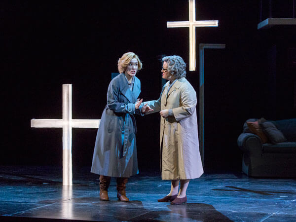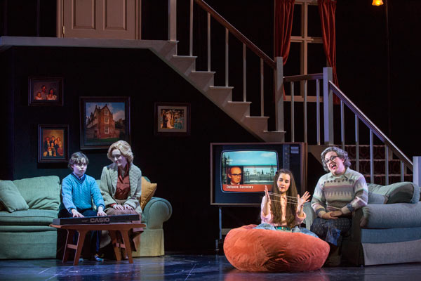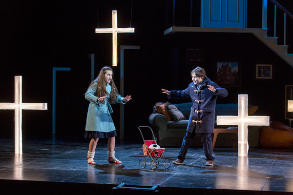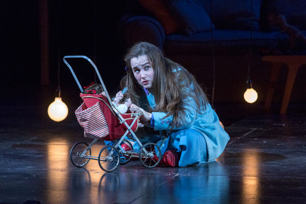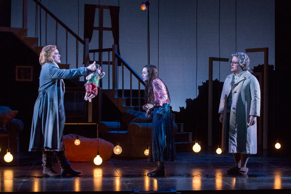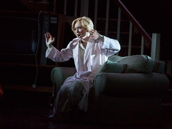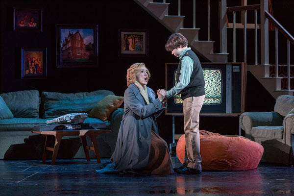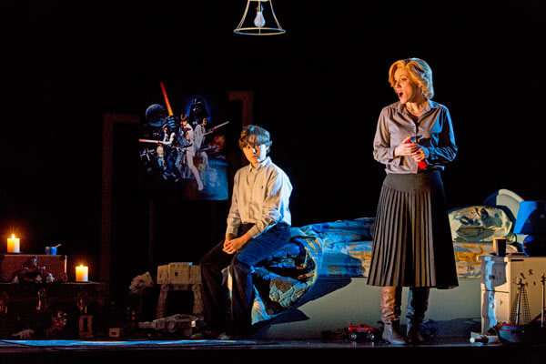For his opera debut, director Sam Buntrock decided to set the story in the late 1970s or early 1980s—according to Miles’ Star Wars-themed bedroom and David Farley’s set and costumes—and apart from a couple of couple of anachronistic moments (children bowing and curtsying, or spontaneously singing nursery rhymes) it worked rather well. The only thing that fell flat—for me—was the transposition of Henry James’s classic ghost story to a contemporary horror movie: references to The Exorcist, The Shining, and Poltergeist completely flew over my head, even though I thought to myself that Quint was probably the only operatic character who didn’t need a remote to turn a TV on. It might just be a matter of personal taste (I am familiar with all these movies but was never a fan) and others might well read these references very clearly. Or could it be the lighting? Even though very effectively designed by David Weiner (the inside/outside dichotomy being achieved by a spatial organization of hanging bulbs and a foreground/background illumination) the lighting might have been a bit too comforting to inspire horror.