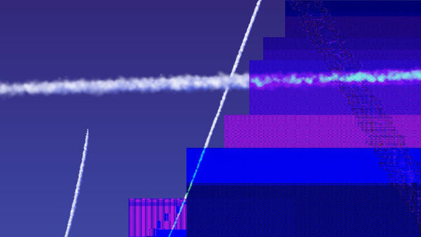 Simon’s been cooking up a really amazing live video with which he will improvise onstage in real time—and yes, it definitely draws from that same lo-tech aesthetic but uses some very high-tech software to achieve a reimagining of the low-fi aesthetic with the capabilities of modern animation and film editing software. In practice, this helps Simon create lots of the kind of vivid glitching we’re after more reliably—because waiting for glitches—and of course, interesting, beautiful glitches—to happen could take a long time otherwise.